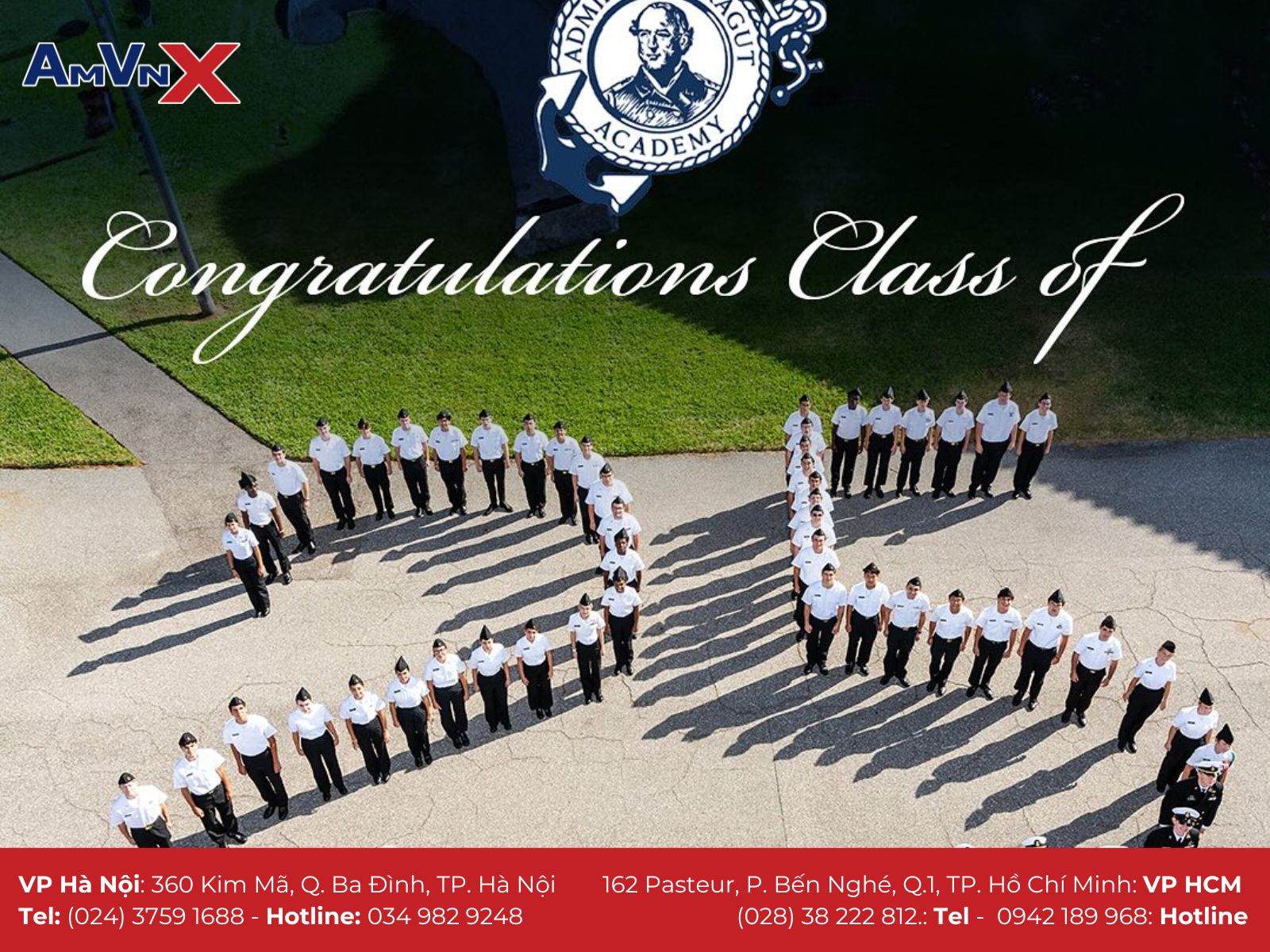 Để tìm hiểu thêm về Trường nội trú Admiral Farragut Academy và có những đánh giá khách quan trong quá trình lựa chọn môi trường cho con. Mời ba mẹ liên hệ với AMVNX - Tổ chức giáo dục Mỹ với 15 năm hỗ trợ học sinh, sinh viên du học để được đội ngũ chuyên viên tư vấn. giải đáp và “gỡ rối” mọi vấn đề cho cha mẹ trên hành trình cho con du học tại xứ sở cờ hoa nhé.