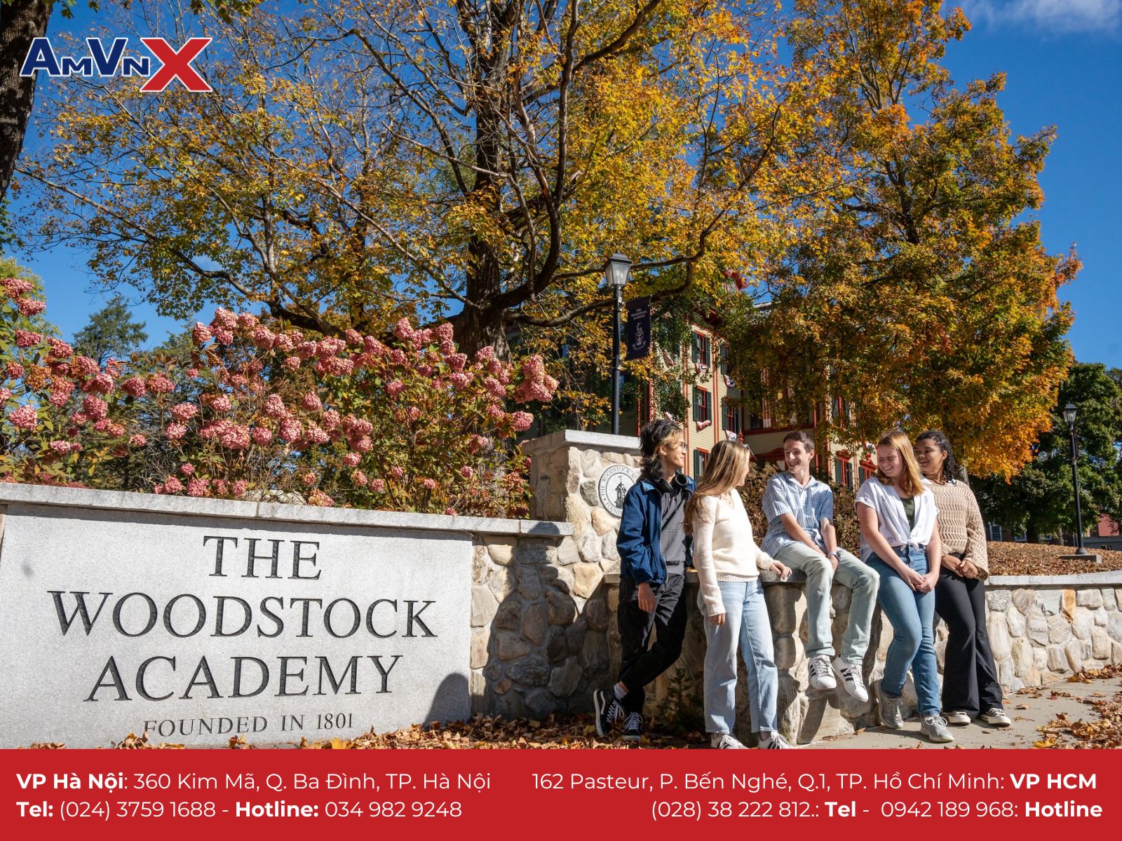 Để tìm hiểu thêm về Trường nội trú The Woodstock Academy và có những đánh giá khách quan trong quá trình lựa chọn môi trường cho con. Mời ba mẹ liên hệ với AMVNX - Tổ chức giáo dục Mỹ với 15 năm hỗ trợ học sinh, sinh viên du học để được đội ngũ chuyên viên tư vấn. giải đáp và “gỡ rối” mọi vấn đề cho cha mẹ trên hành trình cho con du học tại xứ sở cờ hoa nhé.