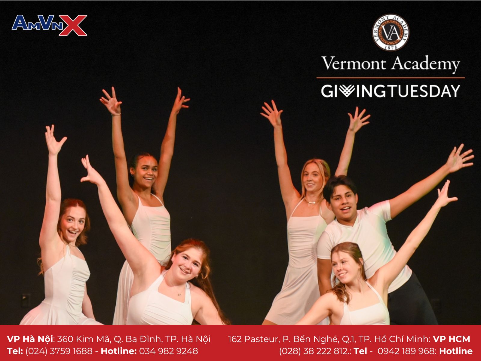 Để tìm hiểu thêm về Vermont Academy và có những đánh giá khách quan trong quá trình lựa chọn môi trường cho con. Mời ba mẹ liên hệ với AMVNX - Tổ chức giáo dục Mỹ với 15 năm hỗ trợ học sinh, sinh viên du học để được đội ngũ chuyên viên tư vấn, giải đáp và “gỡ rối” mọi vấn đề cho cha mẹ trên hành trình cho con du học tại xứ sở cờ hoa nhé. Hãy cùng AMVNX bắt đầu hành trình du học Mỹ đầy hứa hẹn ngay hôm nay!
