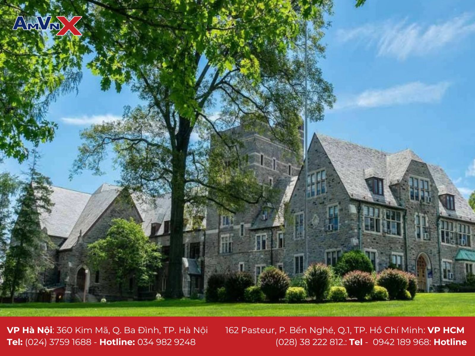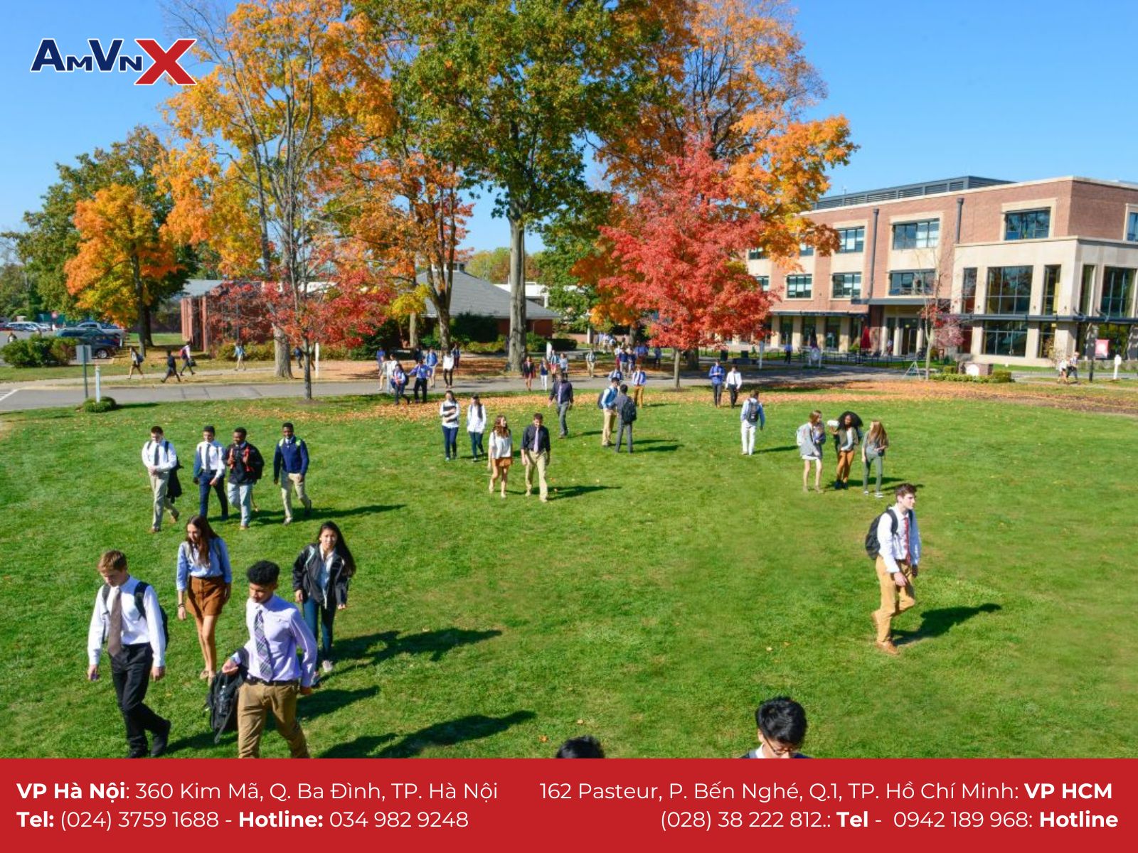Để tìm hiểu thêm về du học tại Mỹ và có những đánh giá khách quan trong quá trình lựa chọn môi trường cho con. Mời ba mẹ liên hệ với AMVNX - Tổ chức giáo dục Mỹ với 15 năm hỗ trợ học sinh, sinh viên du học để được đội ngũ chuyên viên tư vấn. giải đáp và “gỡ rối” mọi vấn đề cho cha mẹ trên hành trình cho con du học tại xứ sở cờ hoa nhé.