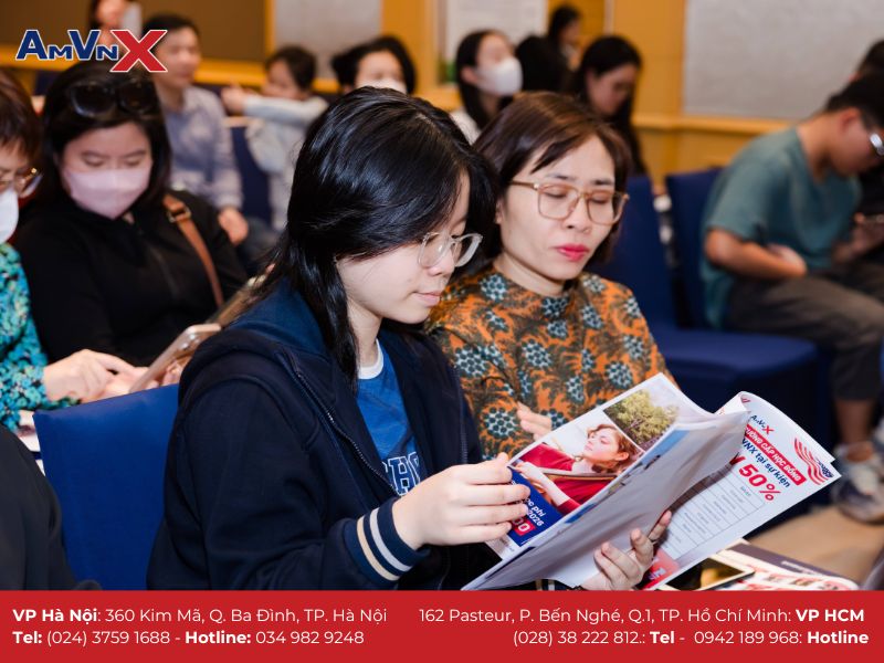 Cuối tuần qua, hội thảo THPT Nội Trú Mỹ: "Buông" Để Con Bay do AMVNX tổ chức đã diễn ra thành công tại Hà Nội và TP. Hồ Chí Minh, thu hút sự quan tâm của đông đảo phụ huynh và học sinh. Sự kiện không chỉ mang đến những thông tin giá trị về hành trình du học THPT nội trú Mỹ mà còn giúp phụ huynh có cái nhìn sâu sắc hơn về việc chuẩn bị tâm lý, tài chính và chiến lược phù hợp để đồng hành cùng con. Với sự tham gia của các chuyên gia hàng đầu, những chia sẻ thực tế từ phụ huynh có con đang học tập tại Mỹ, hội thảo đã mang lại nhiều khoảnh khắc đáng nhớ và hữu ích cho người tham dự.