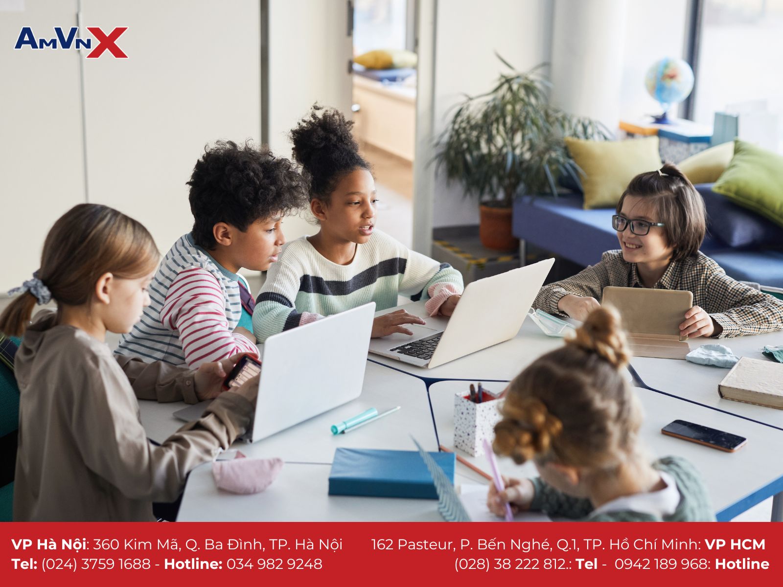 Để tìm hiểu thêm về du học tại Mỹ và có những đánh giá khách quan trong quá trình lựa chọn môi trường cho con. Mời ba mẹ liên hệ với AMVNX - Tổ chức giáo dục Mỹ với 15 năm hỗ trợ học sinh, sinh viên du học để được đội ngũ chuyên viên tư vấn. giải đáp và “gỡ rối” mọi vấn đề cho cha mẹ trên hành trình cho con du học tại xứ sở cờ hoa nhé.